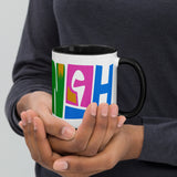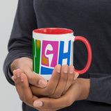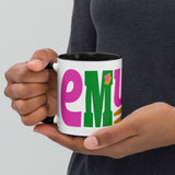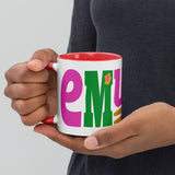 Elevate your morning coffee with this Emunah mug! These ceramic mugs have our original design on them, along with a colorful rim, handle and inside of your choice.