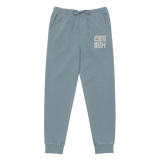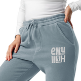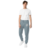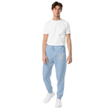 High quality, unisex pigment-dyed sweatpants with an off-white embroidered Emunah design. The garment dyeing process makes these sweats look washed out and ensures a unique Shtettl shade for each pair. These relaxed-fit sweatpants have two pockets on the front and one on the back, and adjustable drawstrings for a secure fit around the waist.